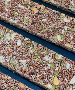 Thành phần: Gạo lứt, rong biển, hạnh nhân lát, hạt điều, hạt bí xanh, mè, mật ong.